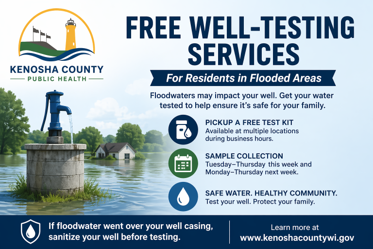 SALEM LAKES, Wis. — Residents in Salem Lakes impacted by recent flooding can now pick up free well water test kits through a partnership between the Village of Salem Lakes and the Kenosha County Department of Health and Human Services. Village Administrator Michael Kostiuk said the free kits are available at Village Hall from 8 a.m. to 4:30 p.m. Completed kits can also be dropped off at Village Hall, including after hours in a designated drop box. The announcement comes after Kenosha County, the Village of Salem Lakes and the Town of Wheatland all declared states of emergency due to widespread flooding in the area earlier this week. Kostiuk said the village wanted to make testing accessible to residents who may have concerns about contamination after floodwaters impacted wells and