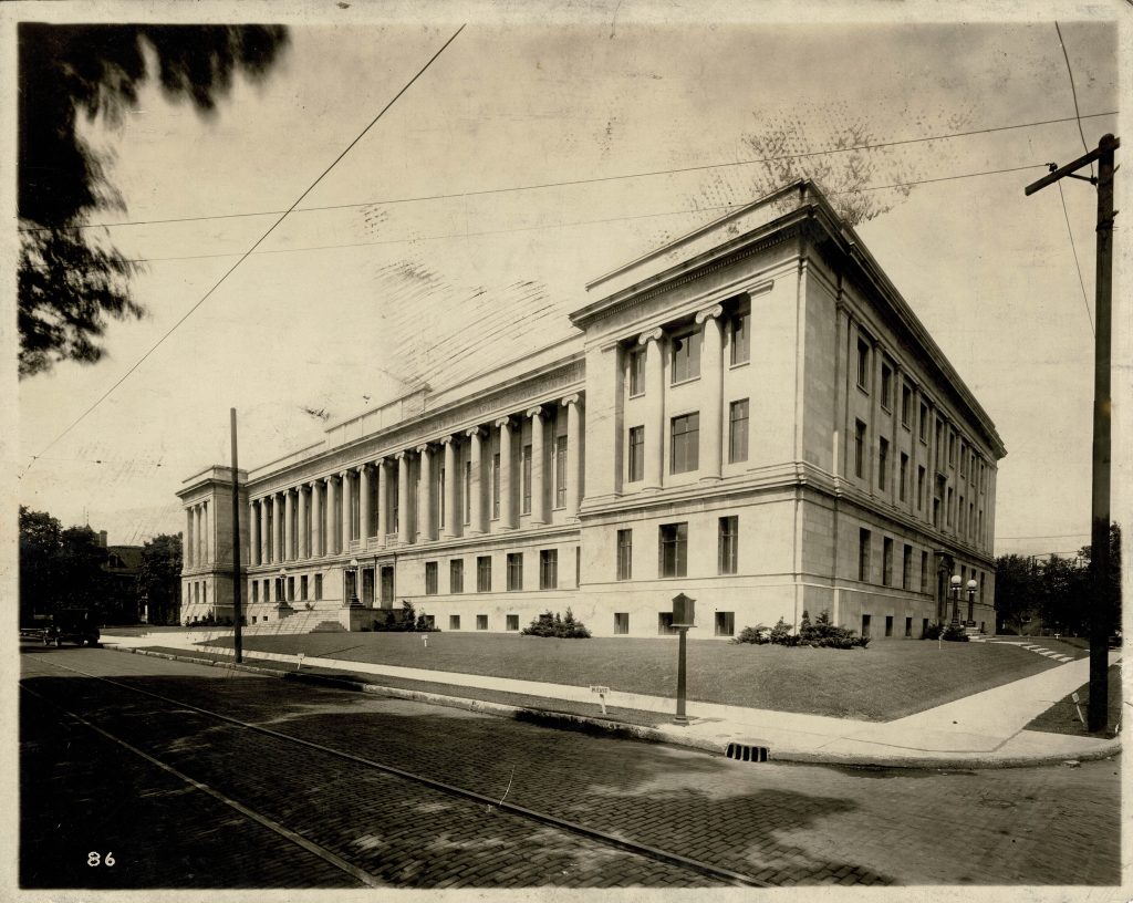 When it opened, the courthouse was hailed as the “finest courthouse in the West.” Designed by architect Joseph Lindl in a neoclassical style, the limestone building features 22 colossal columns overlooking 56th Street and two-story courtrooms filled with natural light and murals by artist Charles Holloway.