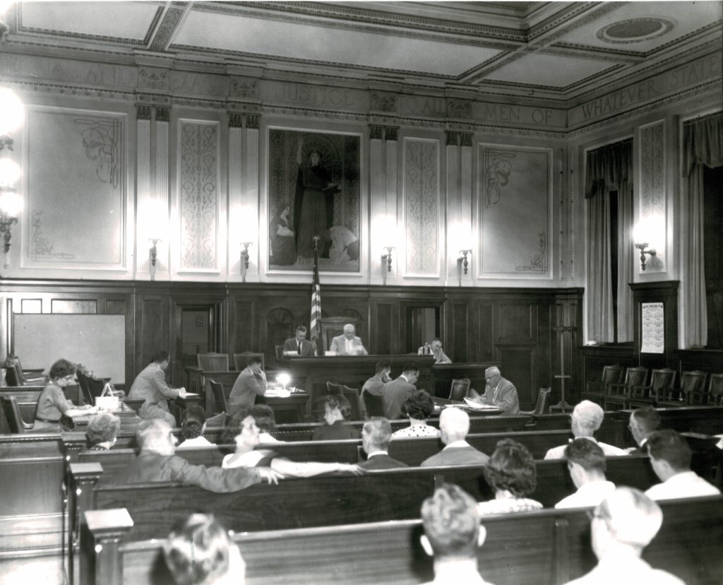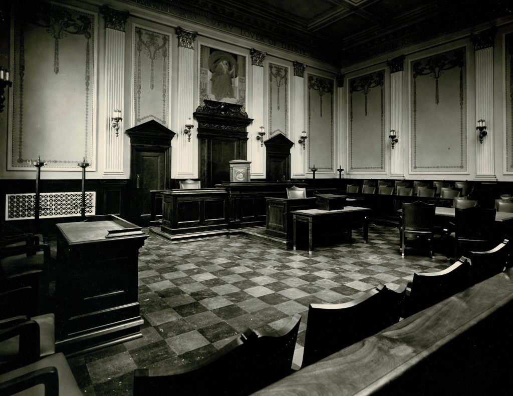 Over the decades, renovations and expansions changed parts of the building. In the 1960s, one grand courtroom was split into two, and much of the original detail was lost. The second grand courtroom, now the Ceremonial Courtroom, was preserved but covered by a drop ceiling. A restoration project, funded with more than $2 million in private donations and a $675,000 Jeffris Family Foundation matching grant, is now underway to bring that room back to its original splendor.
