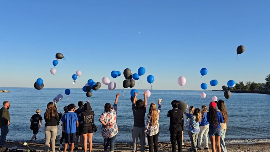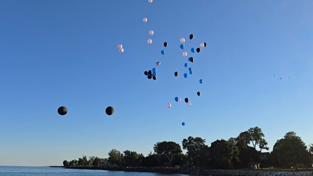 There, as the waves rolled in, they released their balloons into the sky in a quiet, emotional tribute.