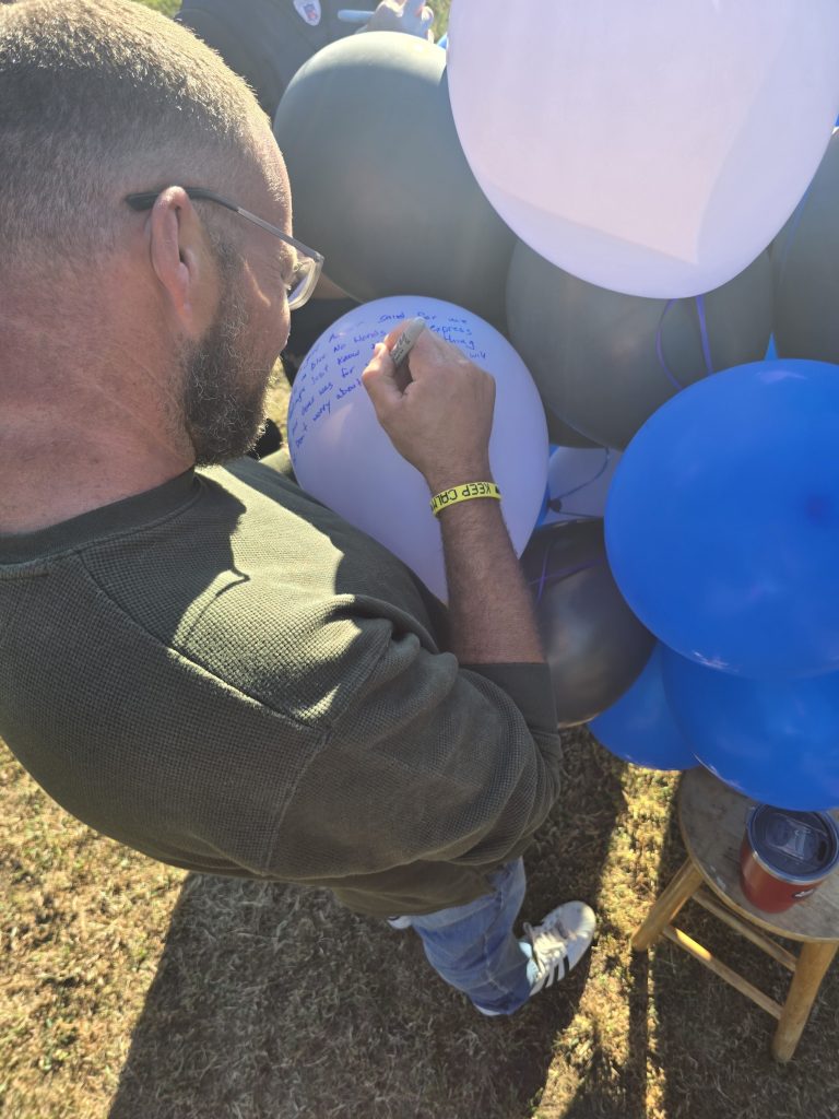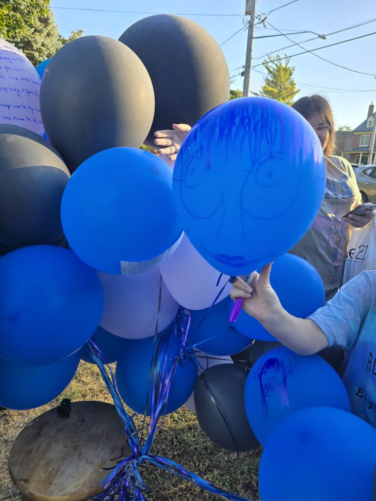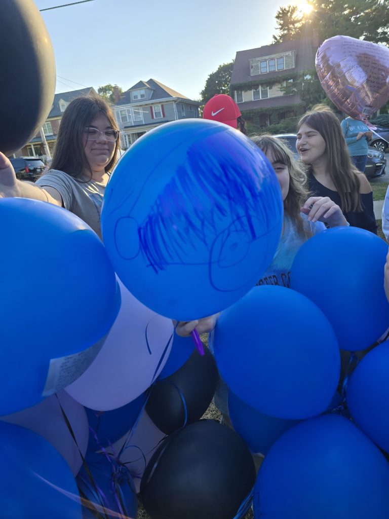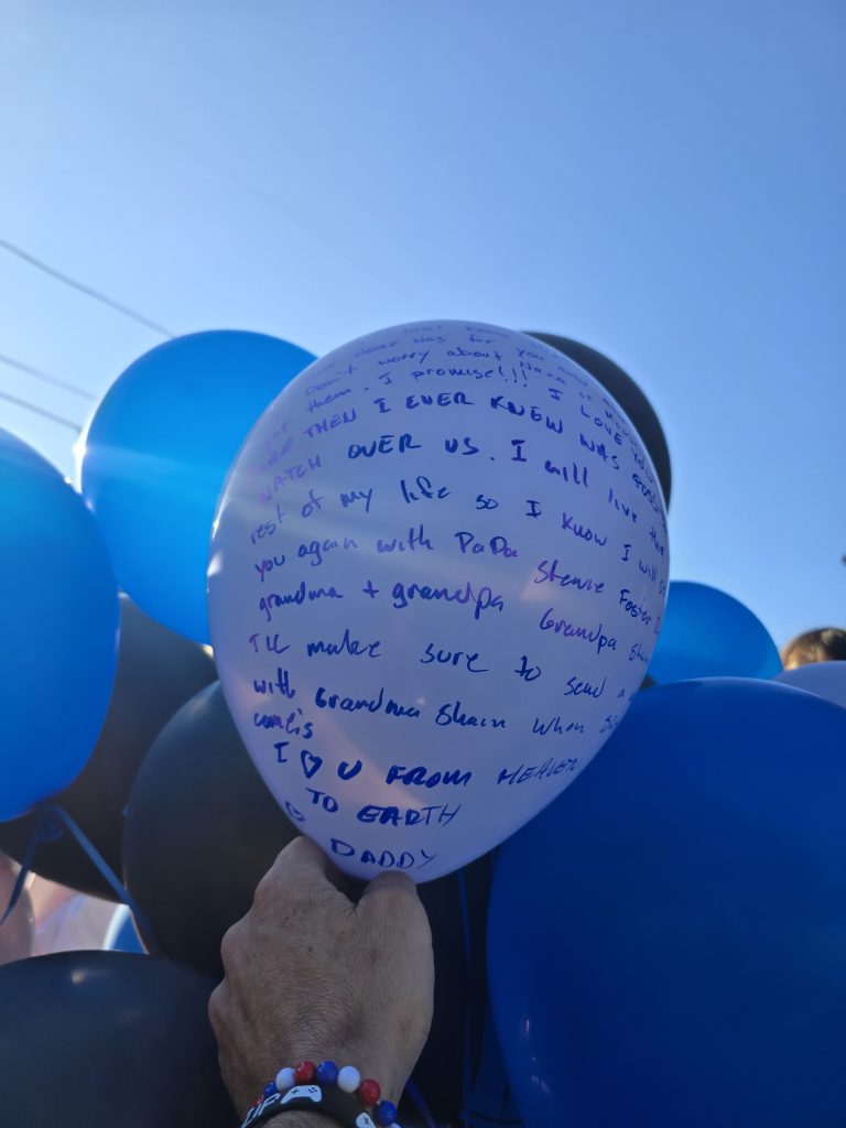 Friends arrived carrying balloons—many with handwritten notes scrawled across the surface, others decorated with drawings and portraits of Addi. The group shared hugs, memories, and tears before walking down together to the beach that Addi loved so dearly.