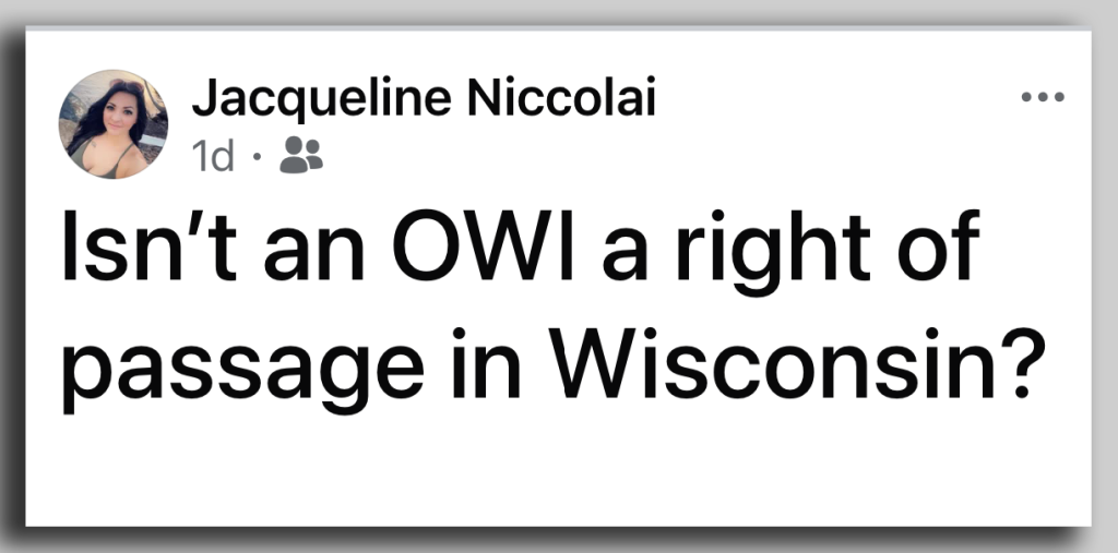 At the time of her OWI arrest, Niccolai admitted to consuming alcohol, Xanax, Vyvanse, and Hydroxyzine before crashing her vehicle in the City of Kenosha. During a prior incident, she was arrested for carrying a firearm while intoxicated and then threatened to kill police officers while violently kicking a squad car window more than two dozen times. Despite those actions, the Kenosha County District Attorney’s Office declined to pursue charges for Felony Threat to Law Enforcement Officer, Disorderly Conduct, or Criminal Damage to Property.