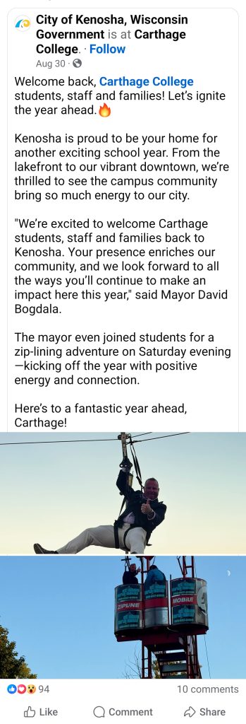 Disclosure: I am a Carthage graduate and native Kenoshan. I’m also not a fan of Carthage’s current and recent administrations and stopped donating.