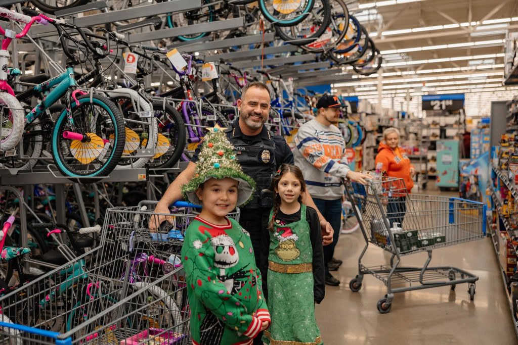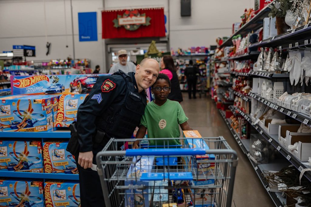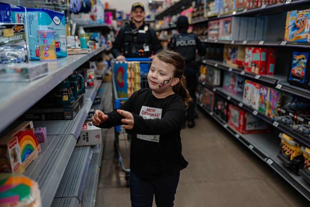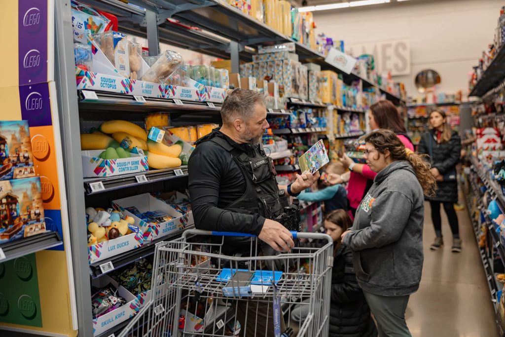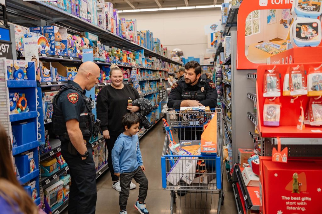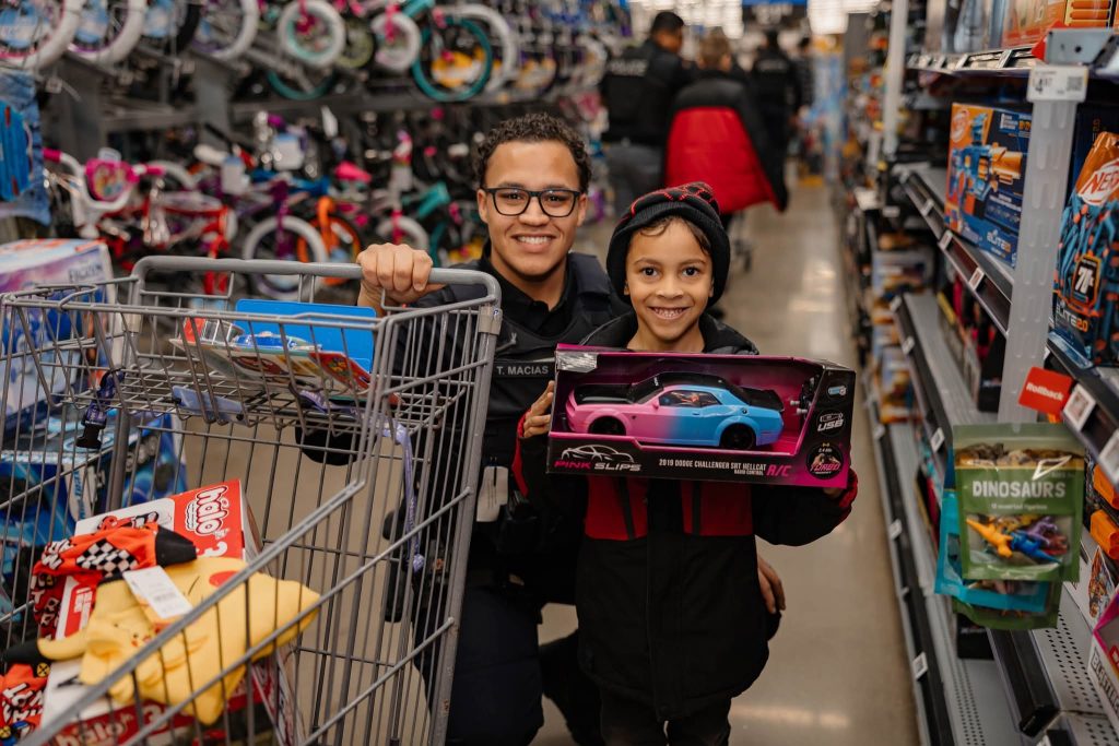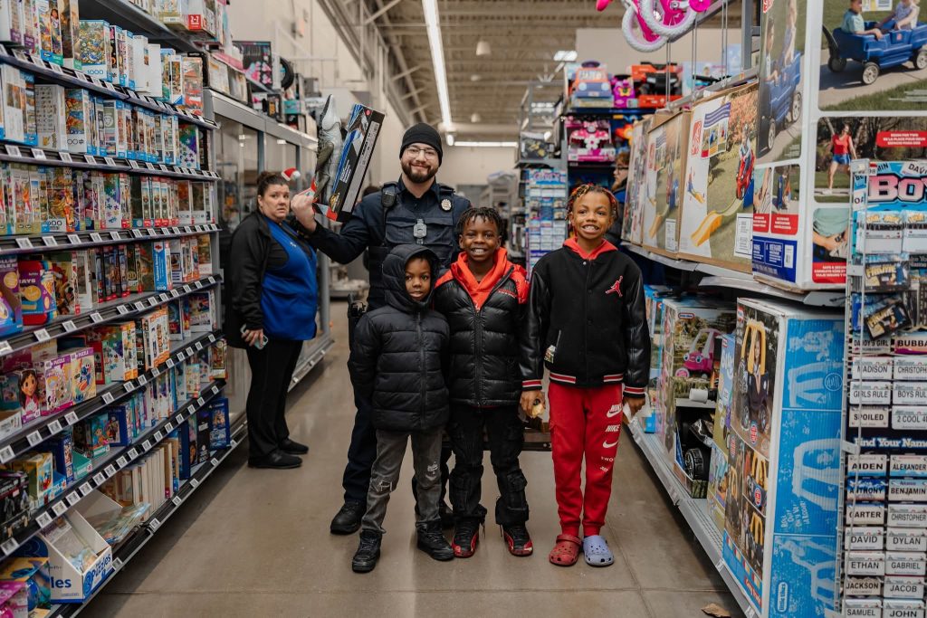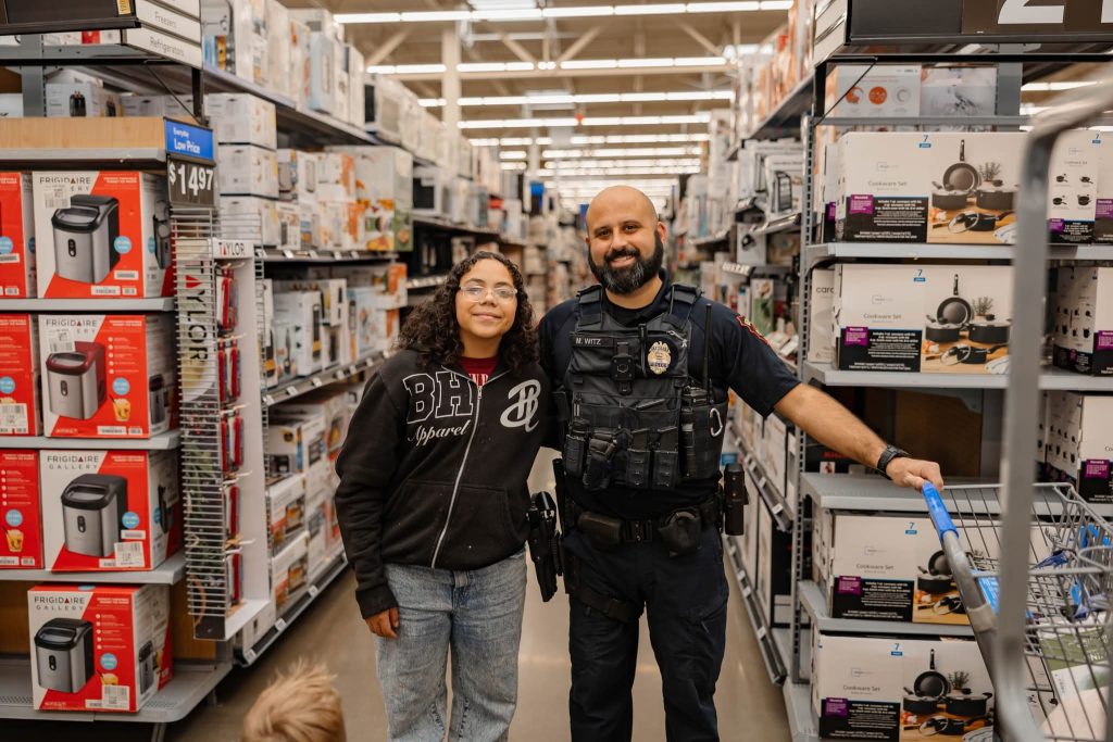 Officers walked shoulder-to-shoulder with the kids, pushing carts, helping pick out toys, clothes and electronics, and sharing laughs along the way. Many parents and guardians stood nearby watching proudly as the children shopped and shared stories with the officers.