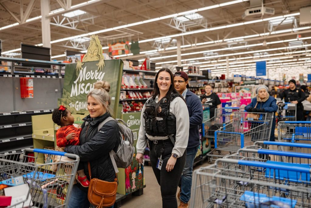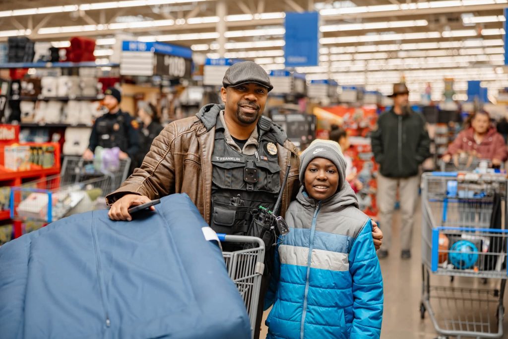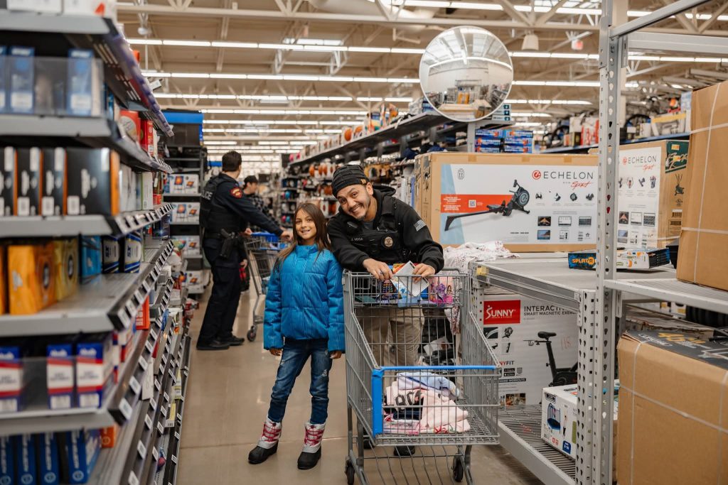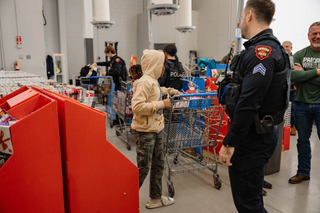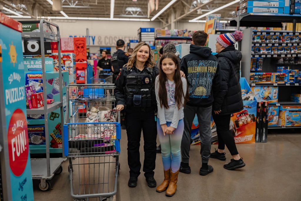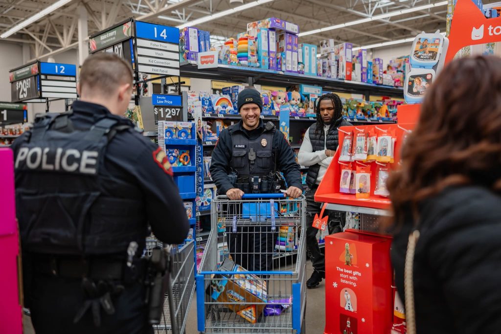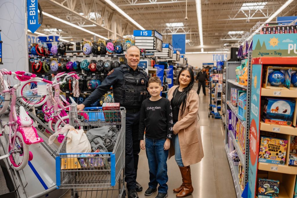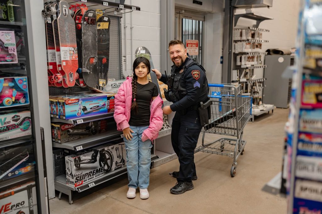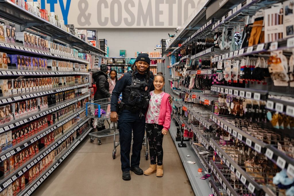 Officers walked shoulder-to-shoulder with the kids, pushing carts, helping pick out toys, clothes and electronics, and sharing laughs along the way. Many parents and guardians stood nearby watching proudly as the children shopped and shared stories with the officers.