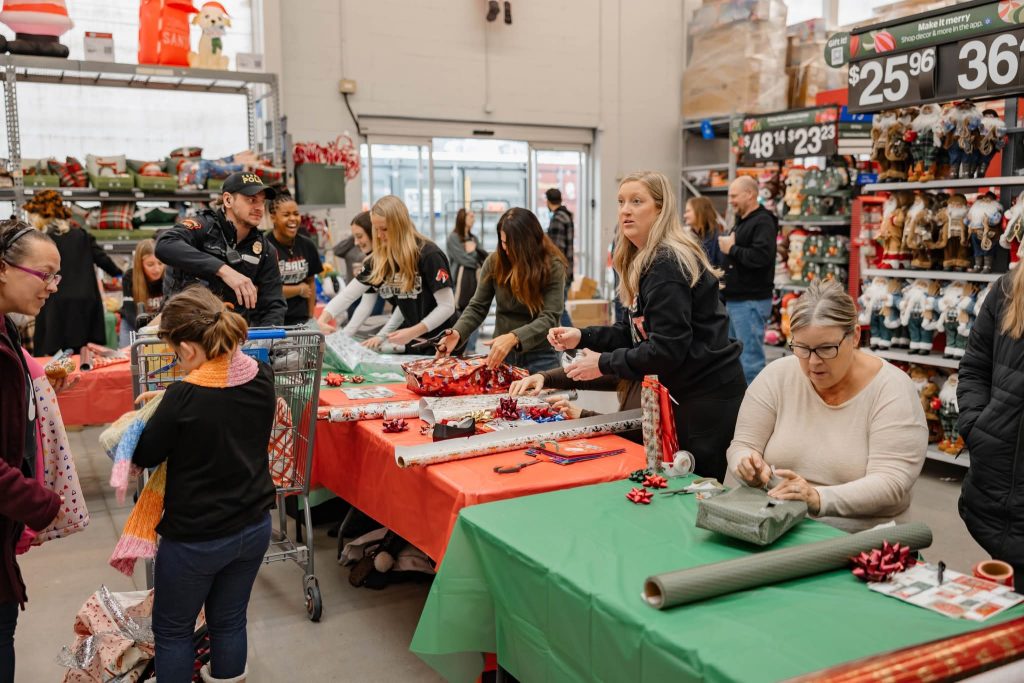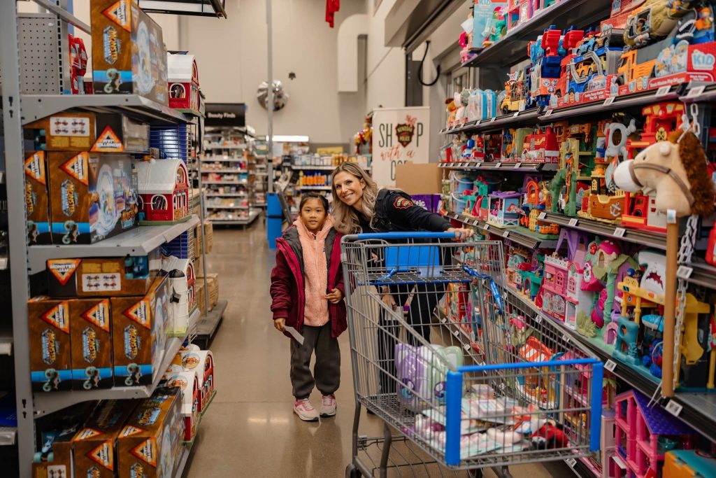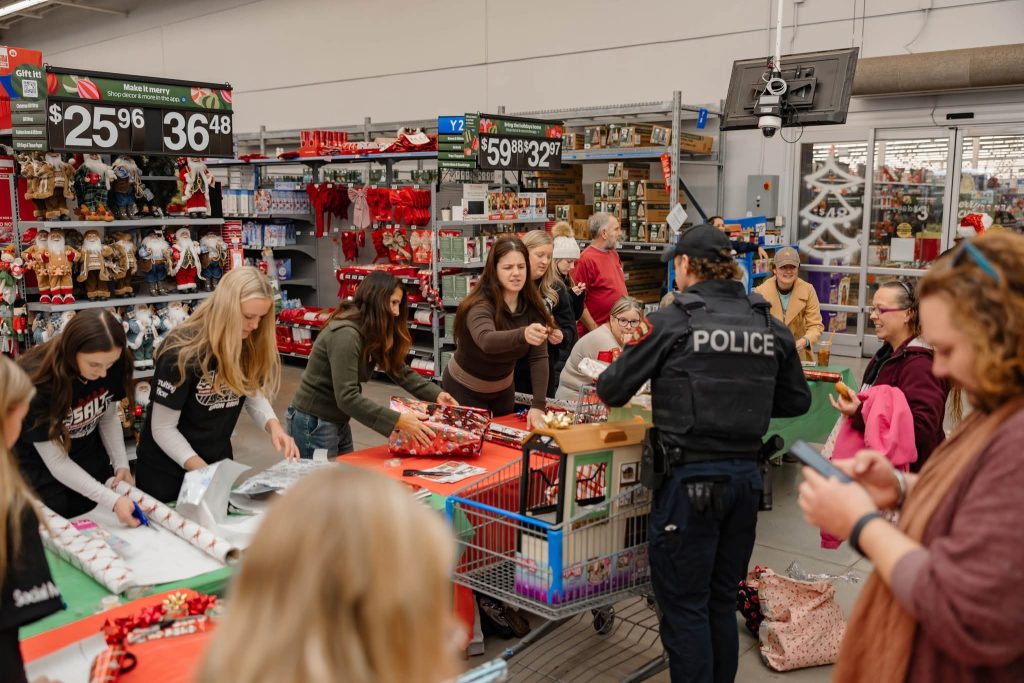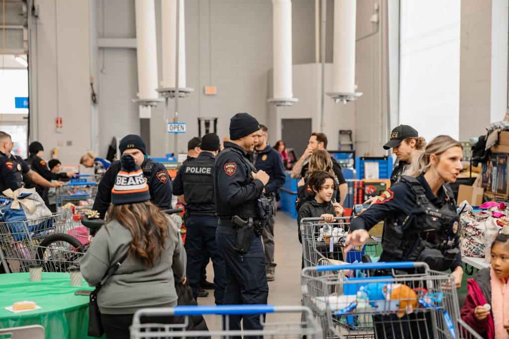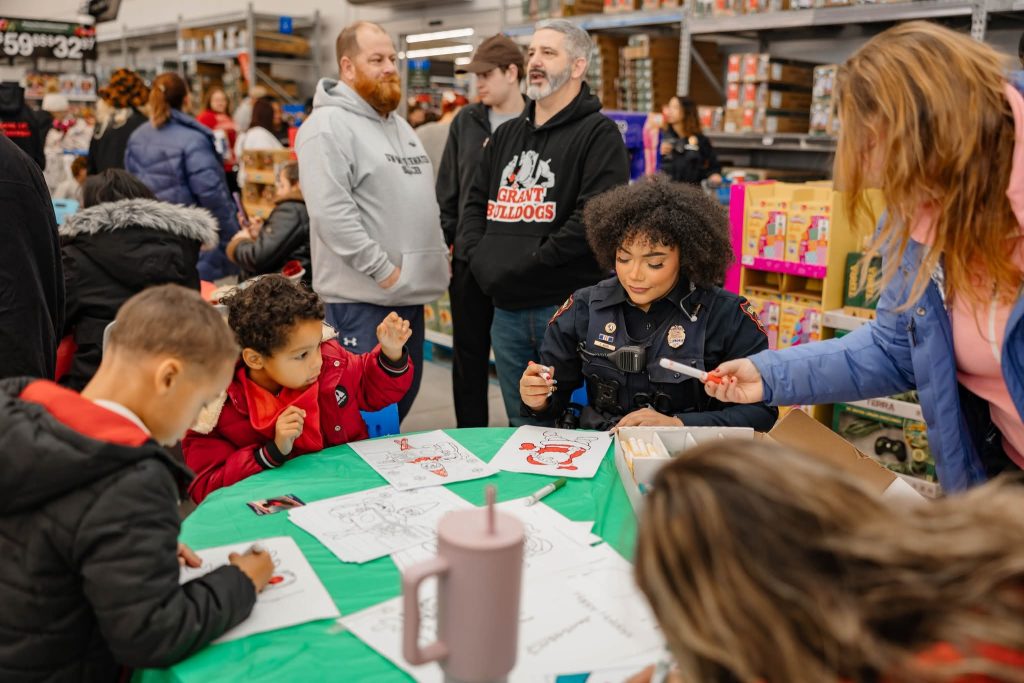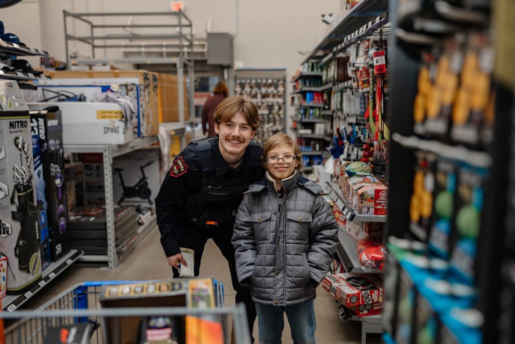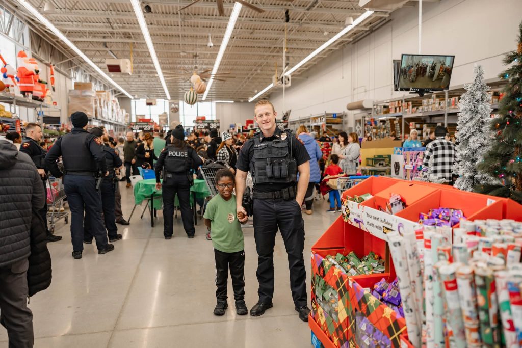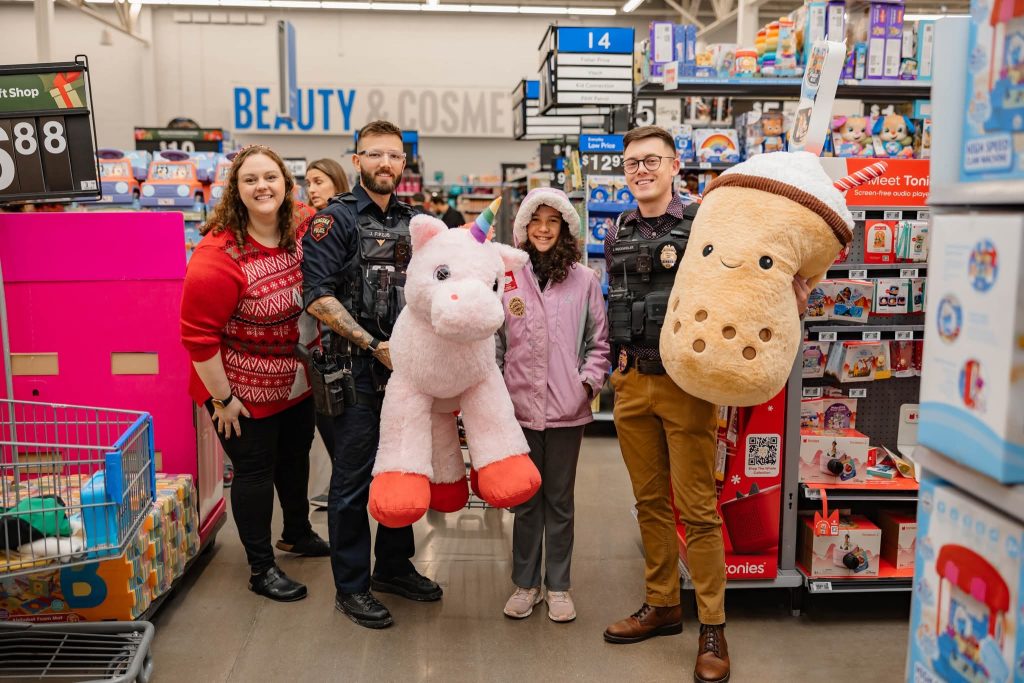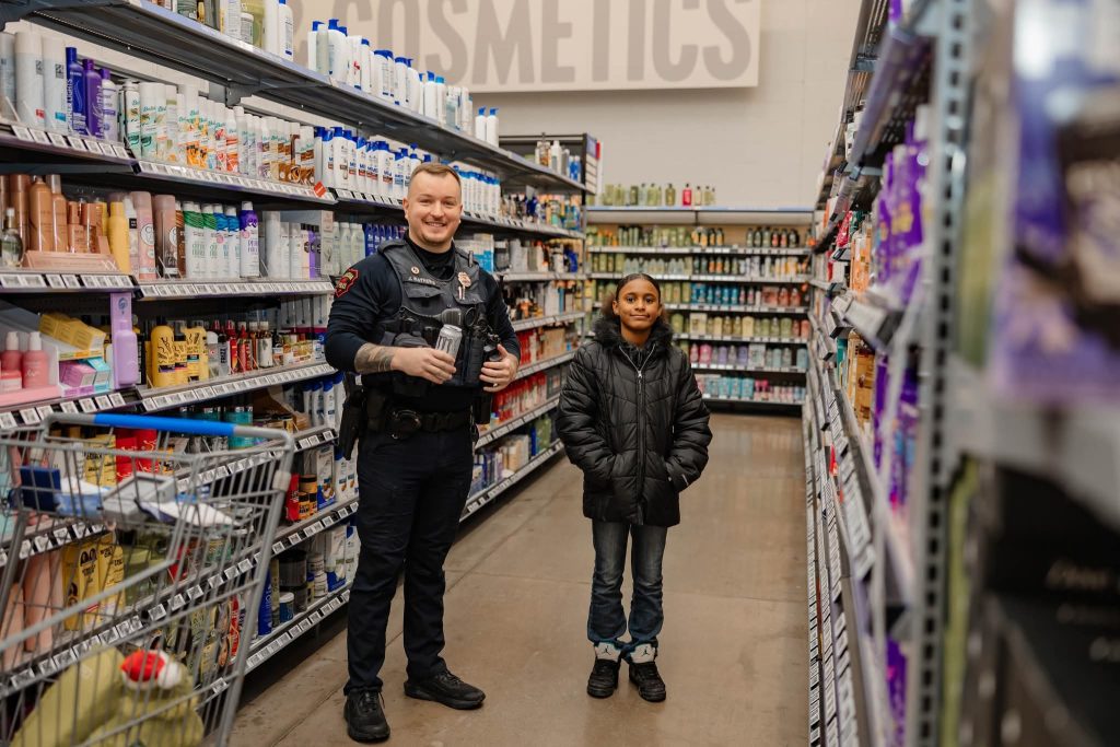 Officers walked shoulder-to-shoulder with the kids, pushing carts, helping pick out toys, clothes and electronics, and sharing laughs along the way. Many parents and guardians stood nearby watching proudly as the children shopped and shared stories with the officers.
