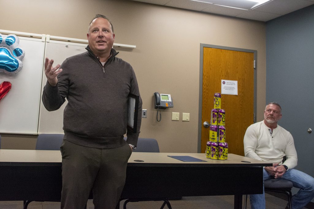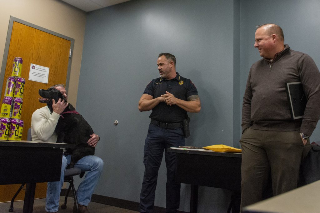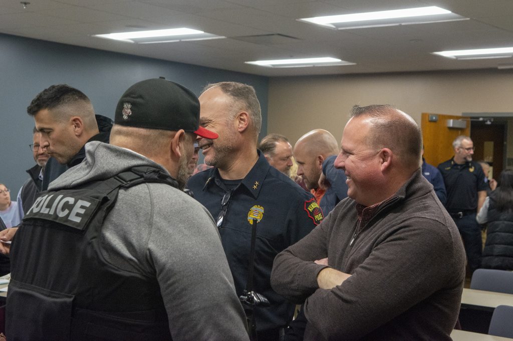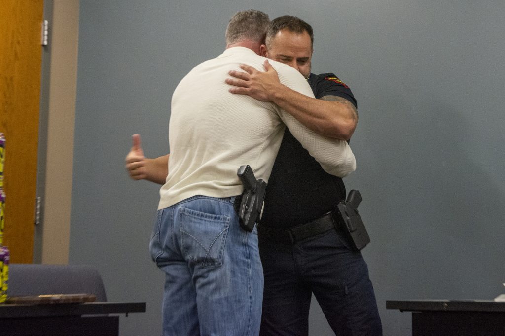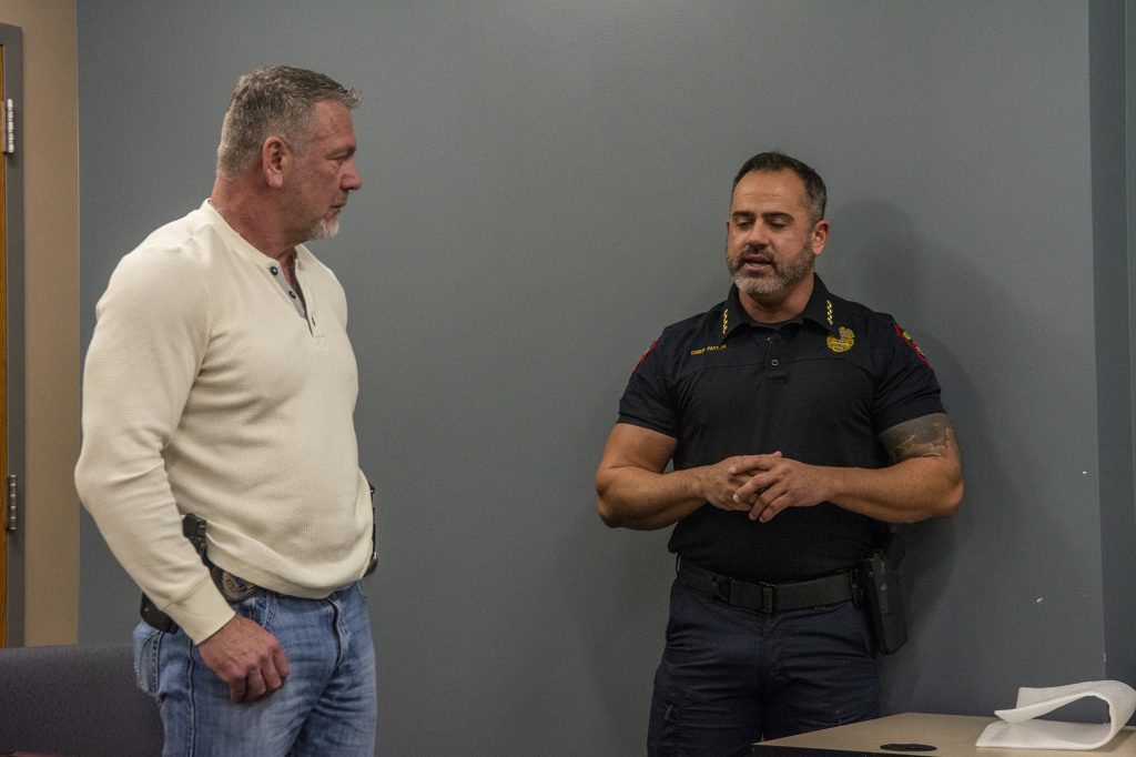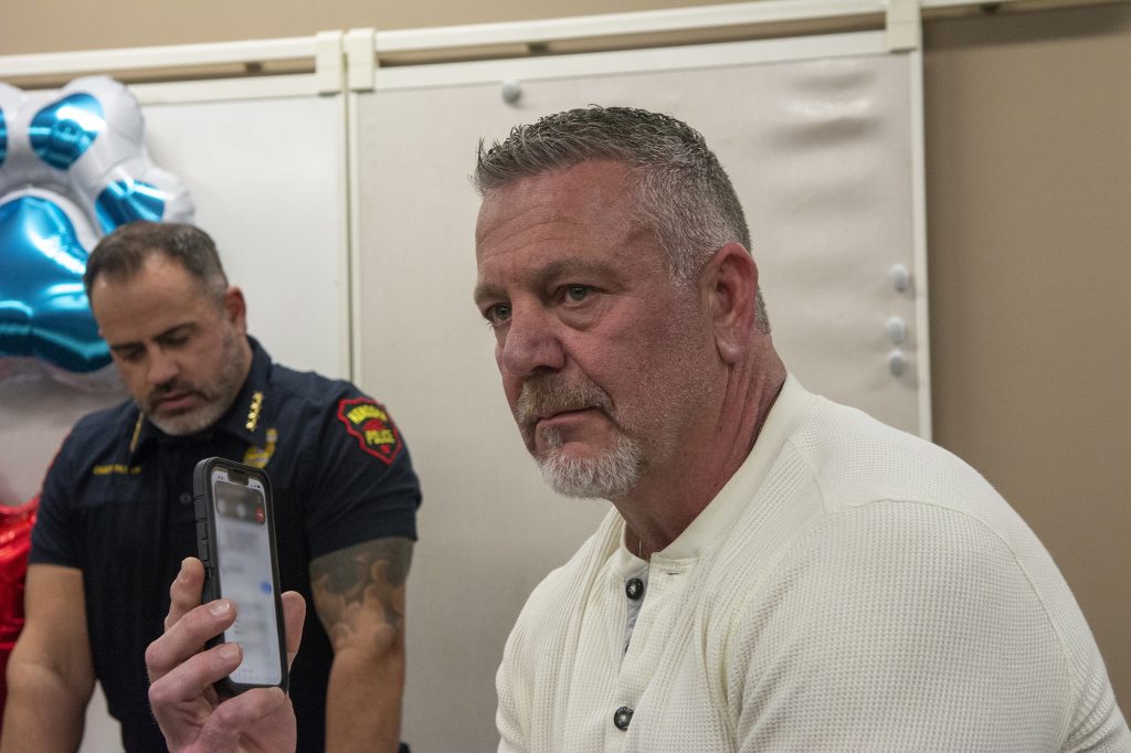 Police Chief Patrick Patton emphasized Deates’s long leadership tenure, including nearly 20 percent of the entire history of the officers’ association. Patton recalled that officers often turned to Deates when facing difficult decisions—not because he claimed to have all the answers, but because he listened and helped them figure out the right path. “You solved people’s problems, not only in our community, but here in the building,” Patton said.