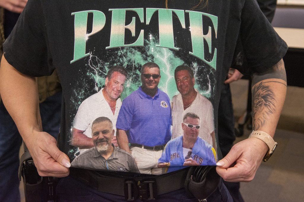 Retired Detective James Kendall presented Deates with his retirement badge and described him as a steady, loyal president who listened without judgment, fought for those who needed support, and built lasting connections throughout the community. “Pete became a pillar of the community,” Kendall said.
