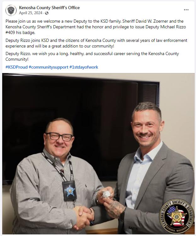Local reporting also documented Rizzo’s separation from the Kenosha County Sheriff’s Office. Records show he resigned in lieu of termination following an internal investigation that found he violated an order of protection by contacting the protected party. Internal affairs records further show investigators concluded that Rizzo misled investigators during the investigation. Kenosha County Eye published the internal affairs records and related court filings, redacting only the protected party’s name and personal identifiers.