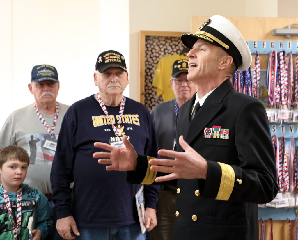 The admiral received a warm welcome from those in attendance, as did Mianecki, who is a regular at the Friday Heroes Café gatherings honoring local veterans.