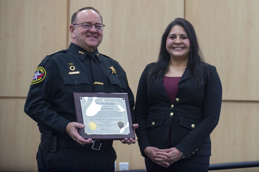 The Sheriff’s Award was presented to Faye Marie Boudreaux for life-saving actions taken when an individual stopped breathing and lost consciousness. Without hesitation, Boudreaux initiated CPR, and the individual regained consciousness. Boudreaux is a U.S. Army veteran whose prior life-saving training was credited with helping stabilize the situation until further aid arrived.
